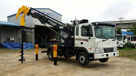 Бурильно-крановая установка SUSAN SA 040 C на базовом шасси грузового автомобиля HYUNDAI GOLD представляет собой широкоуниверсальное техническое средство, которое обладает способностями выполнять разнообразные погрузочно-разгрузочные работы и бурить в грунте отверстия.