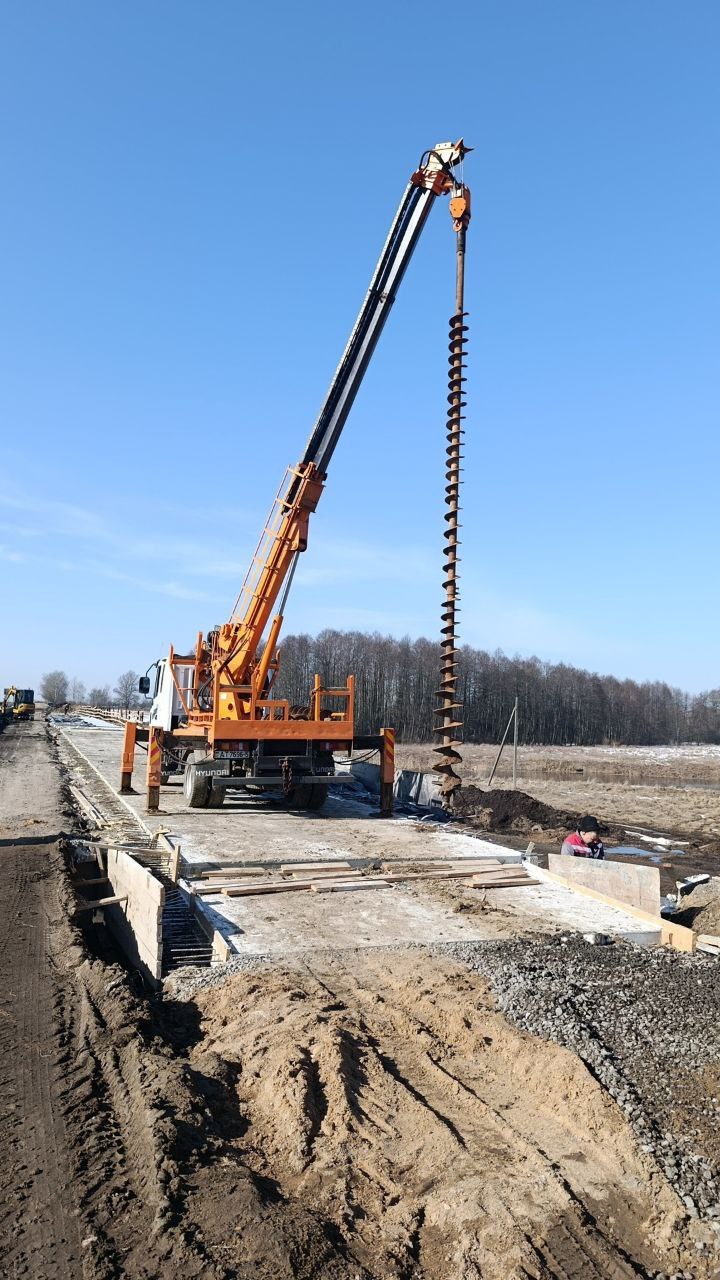 • Непосредственно работа выполняется с помощью маневренной спецтехники на колесном и гусеничном ходу с большим углом разворота стрелы. Используется съемное навесное оборудование. Если приходится работать на глинистой почве – достаточно шнека; если на скальном грунте – требуется также лопастное долото.